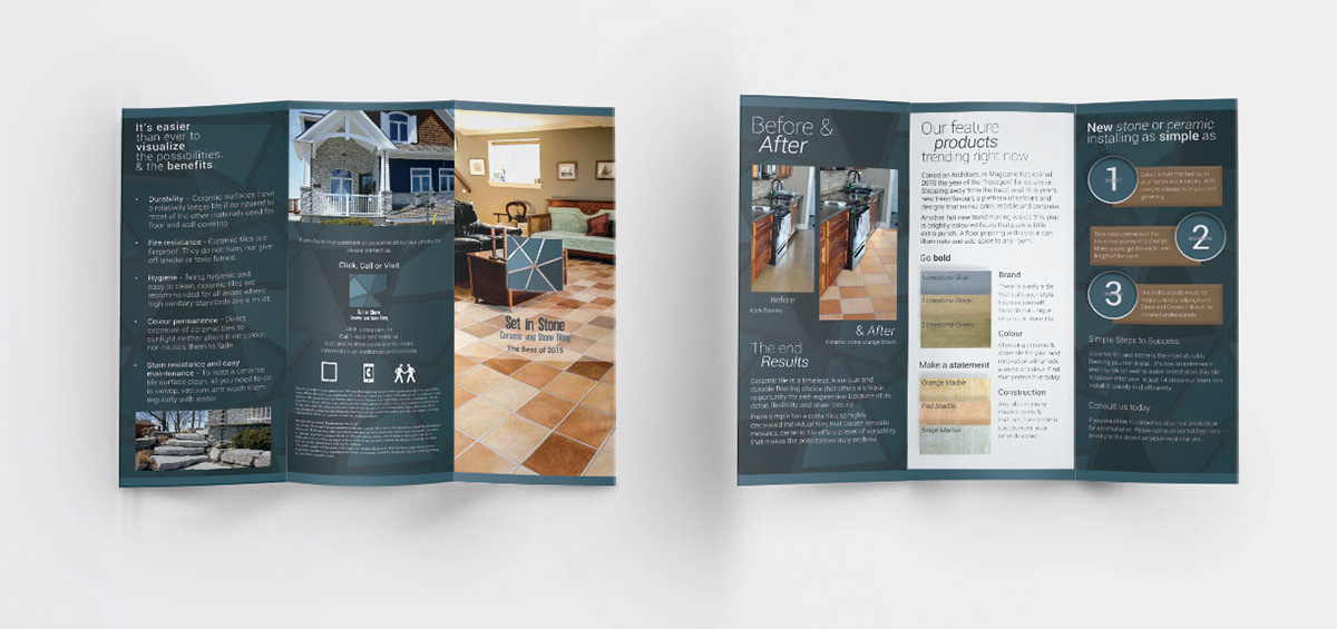 This was a conceptual design process. We had to choose some kind of DIY product, I choose flooring and we had to create a company. Starting with a logo concept to taking our own photography. Replacing flooring with a before and after shot. Then creating a tri-fold brochure design. All with cohesive design skills with typoraphy, photo manipulation and photography skills.